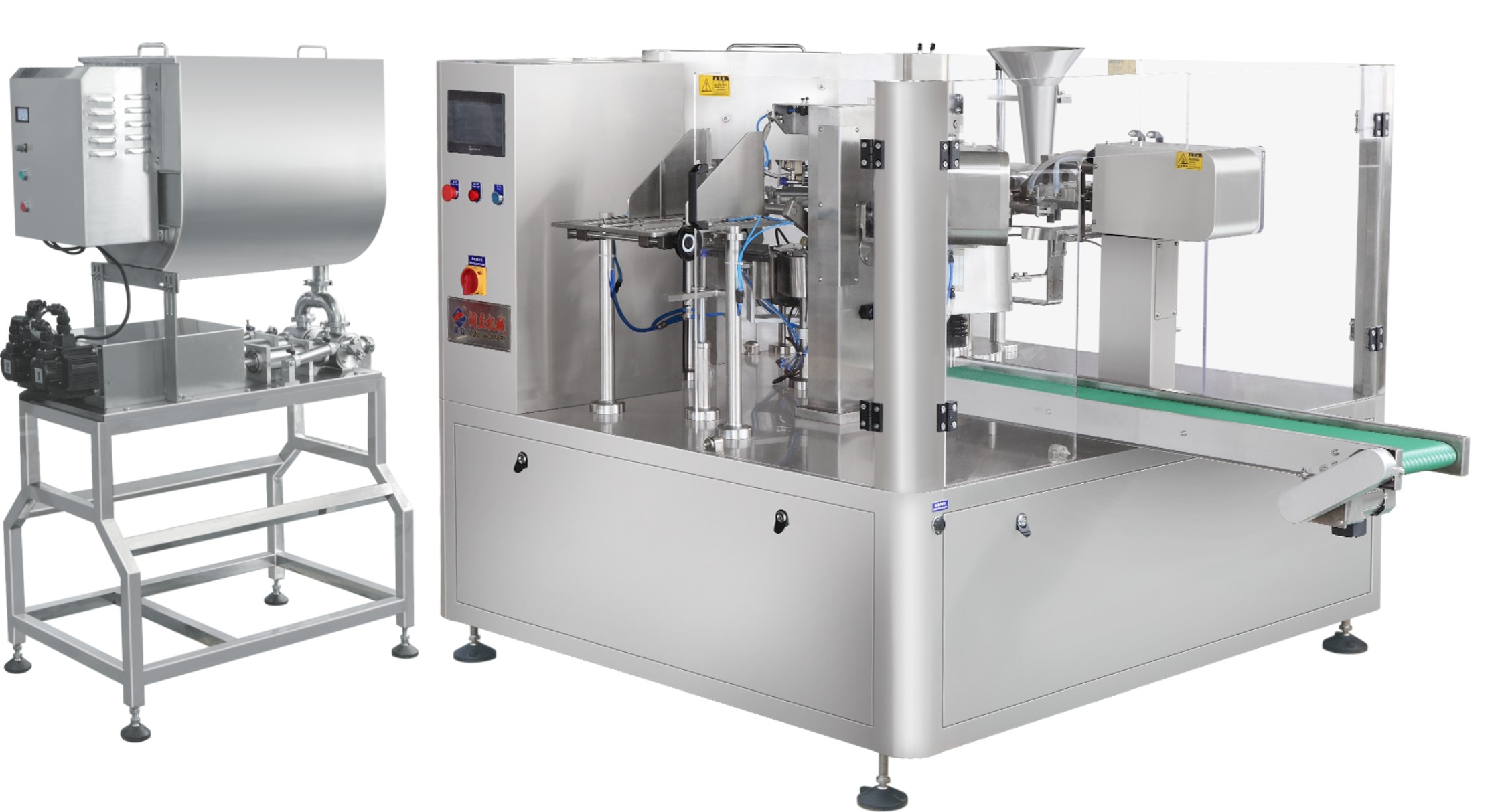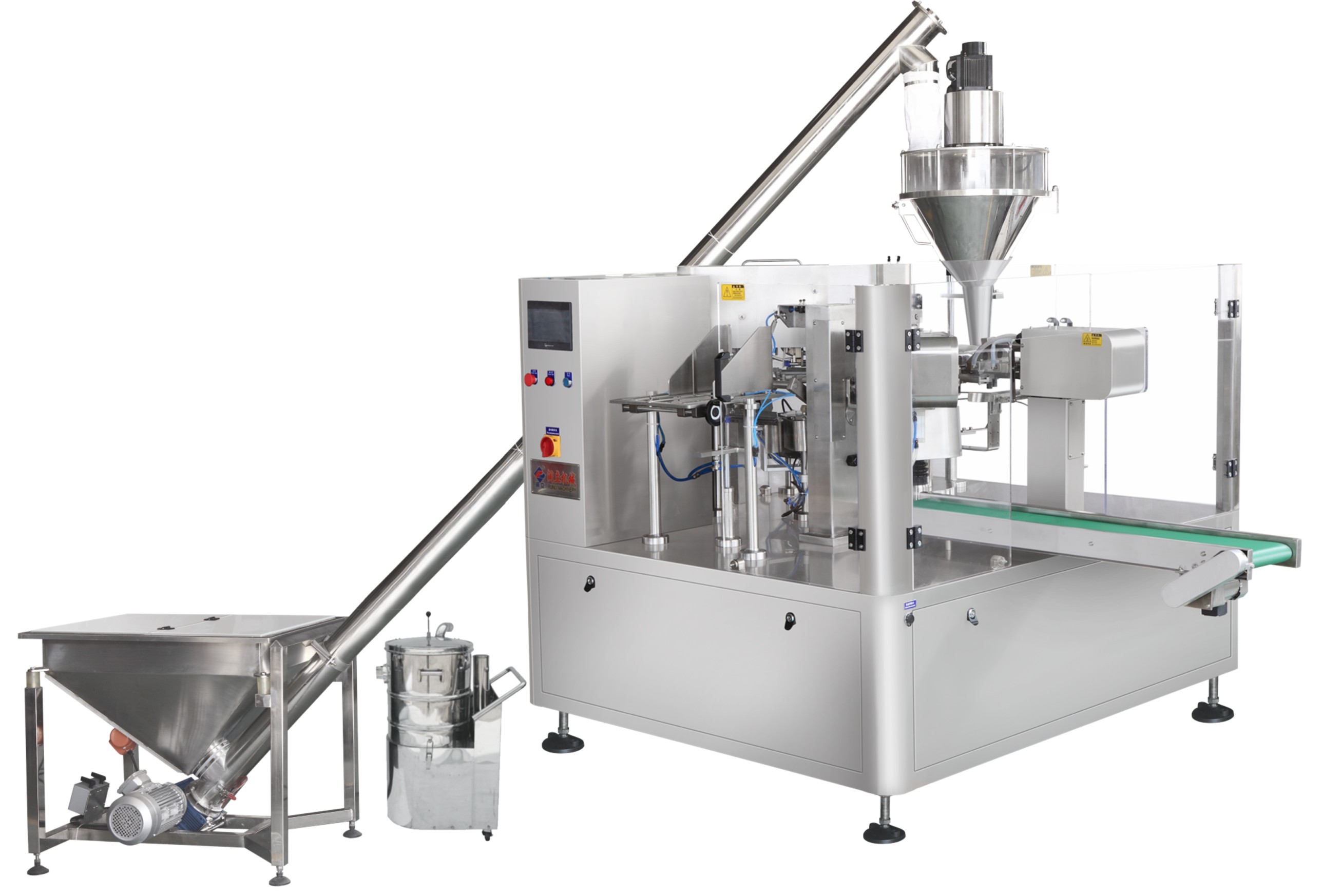 工作流程:上袋-打印日期-开袋-充填1-充填2-预留-热封-整形及输出