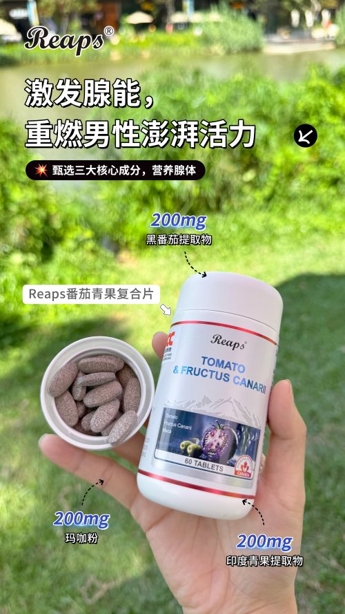 番茄青果复合压片糖果,原产国加拿大,黑番茄提取物、印度青果提取物、玛咖粉、棕榈酸等多重原料深度滋养,激发腺能,澎湃活力,助力男士精力满溢。