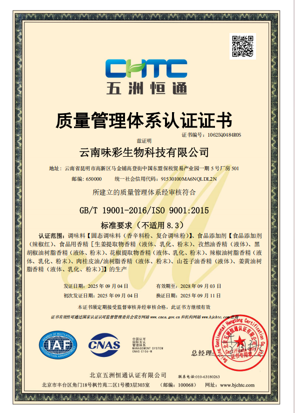 云南味彩生物科技有限公司是一家专业致力于天然植物提取物研发、生产和销售的高新技术企业。